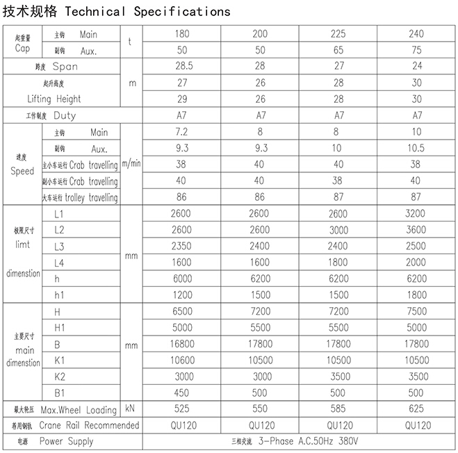 YZ型180、50~240、75t铸造起重机
